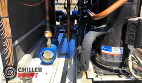 Ликвидируем нарушения плотности трубопроводов тепло/холодоснабжения, проводим чистку оснащения и фильтров-грязевиков. Устраняем нарушения плотности конденсаторов, маслоохладителей, маслоотделителей, ресиверов, теплообменников, отделителей жидкости и прочих составляющих фреонового контура. Проводим дозаправку чиллера маслом и фреоном.